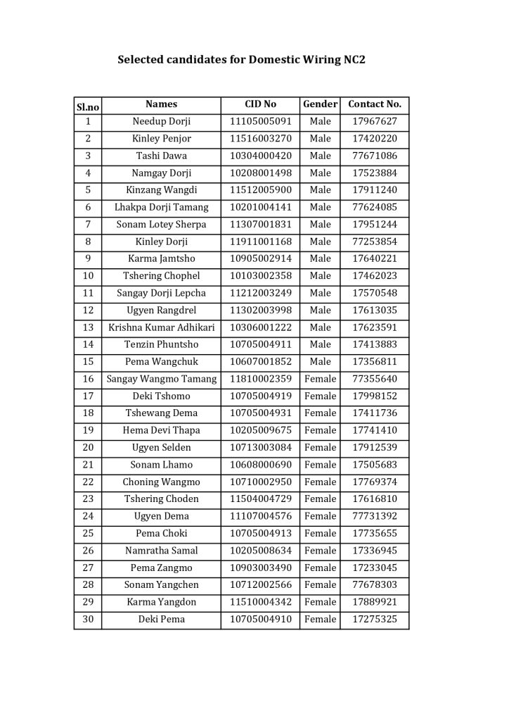 We’re excited to announce the results of our recent selection process for the Domestic Wiring NC2 program at Khuruthang Technical